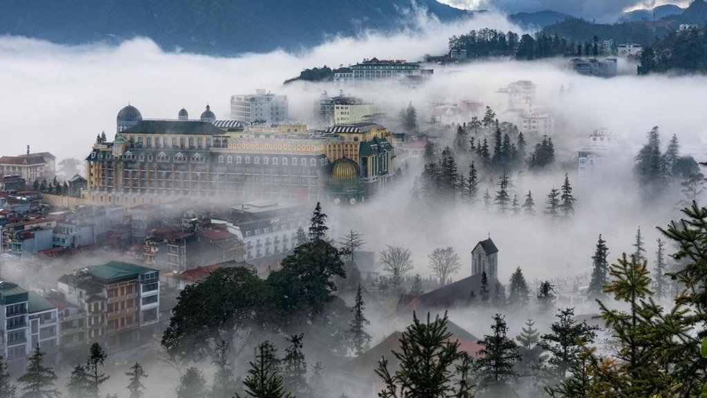 Enjoy breathtaking views of the Hoang Lien Son mountain range. You can stop at Thanh Van Dac Lo and Bich Van Thien Tu to offer incense before reaching the summit. From the top, admire panoramic views of Sapa Town floating among the clouds.